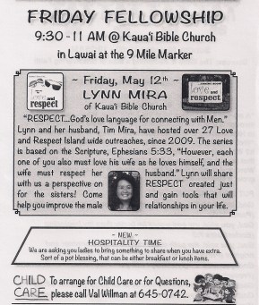 - Love & Respect class, Feb 5, 2023, Sunday, Kalaheo, FREE